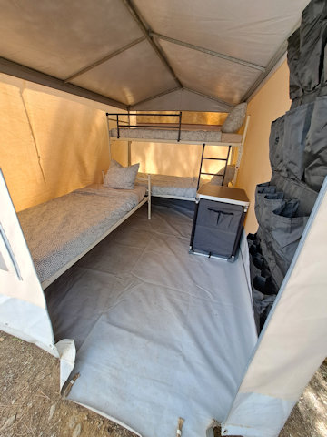 Het aantal bedden in de tent wordt aangepast aan het aantal personen voor wie je boekt.