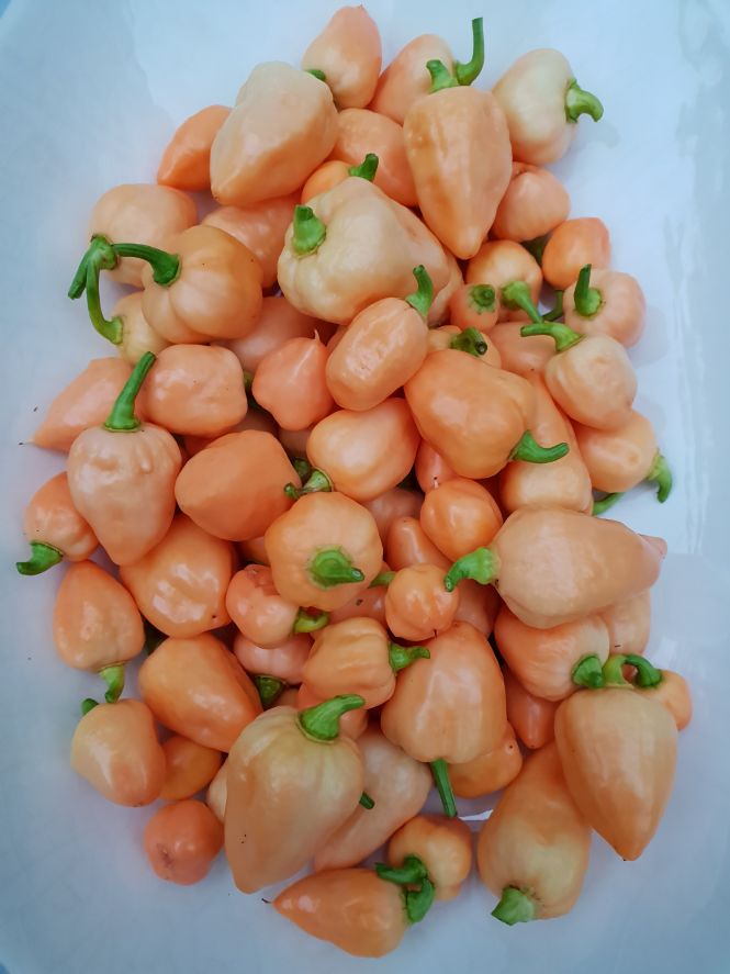 Enfin, de groene pepers zijn in stukken gesneden en met wat koffiebonen, cacaopoeder en wat kruidnagel in een 2.5%-pekel gezet.