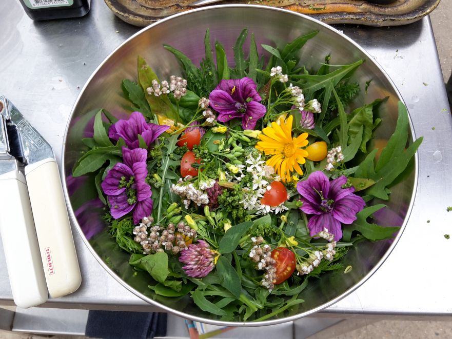 Ik kom net terug uit de moestuin en de groei heeft mij wel ingehaald.... beetje wilde moestuin geworden na de vakantie. Betekent niet dat ik er niets meer mee kan hoor. Ik heb me sinds een tijdje gestort op wild- of onkruidplukken. Dat lukt nu prima in mijn moestuin. Mijn eerste echte onkruidensalade is een feit! De onkruidenpesto heb ik helaas niet op foto maar die was echt heerlijk!