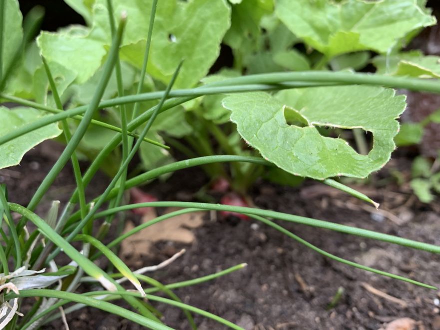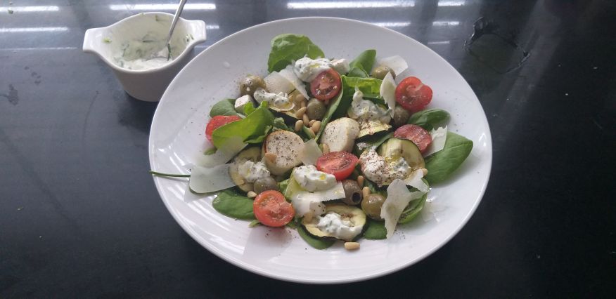 Ik heb vandaag mijn eerste sla uit eigen tuin gegeten! Ook de spinazie, basilicum en de bieslook in de tzatziki kwamen uit eigen tuin. Ik moet deze week veel sla eten anders gaan ze doorschieten ben ik bang.... Ik laat er wel eentje doorschieten voor de bijtjes.