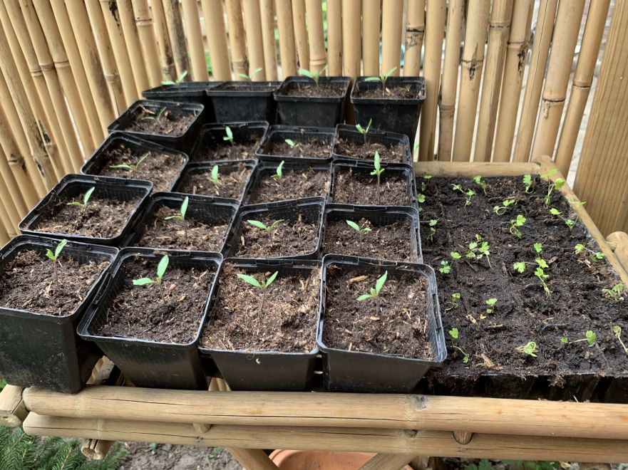 Veel heb je staan Anthea! Hier in de tuin groeit alles gestaag door. De aardbeien beginnen te bloeien, de peulen en sugarsnaps schieten nu goed door. Vandaag binnen sperziebonen gezaaid.