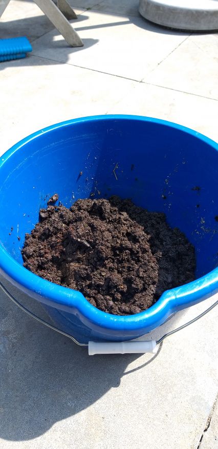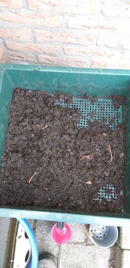 Voor wie geinteresserd is, ik heb mijn eerste oogst van mijn wormenhotel. Ruim een halve emmer mooie voedzame grond voor in mijn tuin. Ze voelen zich inmiddels goed thuis, hebben zichzelf flink vermeerderd en hebben dus mijn groentenresten van afgelopen maanden omgezet naar bodemmateriaal. Af en toe heb ik er ook wat hooi en keutels uit het caviahok ongedaan. Ze verwerken alles! Experiment geslaagd!