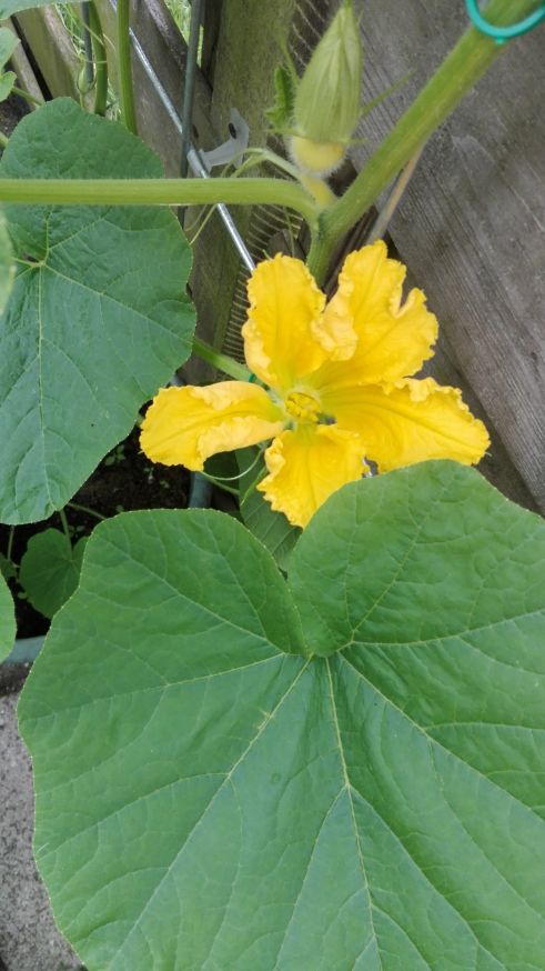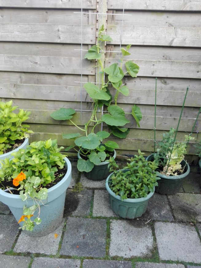 Dat ziet er goed uit! Welke pompoen heb je? Ik heb vandaag flespompoen in de tuin gezet, maar die bloeit nog lang niet. Wel de patisson, ben benieuwd wanneer er vruchten aan komen.